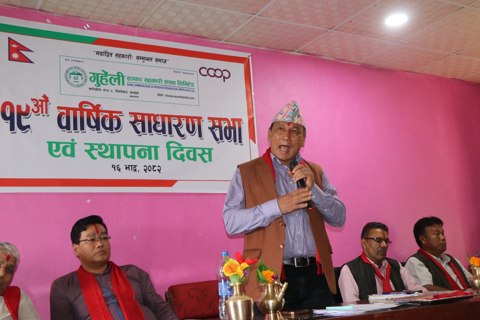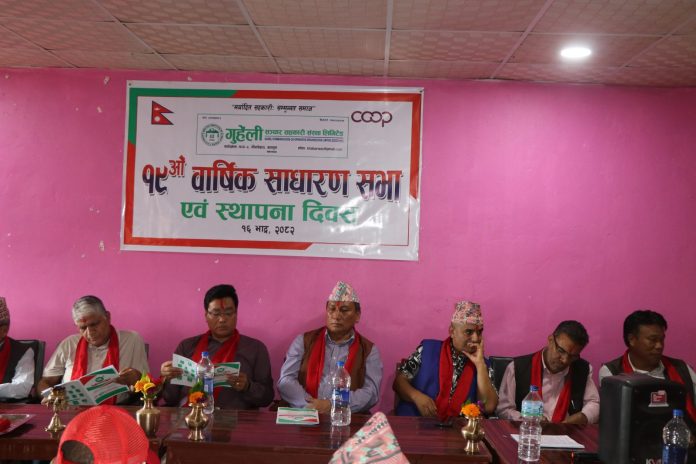 सहकारीका अध्यक्ष खिम बहादुर कार्कीको अध्यक्षतामा सम्पन्न भएको साधारणसभामा उपाध्यक्ष गिता हमालले स्वागत मन्तव्य र सचिव सुर्य बहादुर थापाले संचालन गर्नुभएको थियो ।