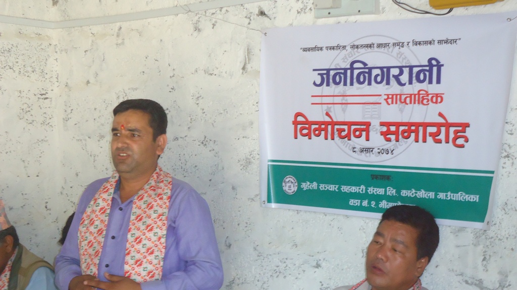 गुहेली संचार सहकारी संस्थाद्वारा व्यवसायिक पत्रकारिता लोकतन्त्रको आधार, सम्वृद्ध र विकासको साझेदार’ भन्ने नाराका साथ प्रकाशनमा आएको पत्रिकाको विमोचन काठेखोला गाउँपालिका अध्यक्ष अमर थापाले गर्नुभएको थियो ।