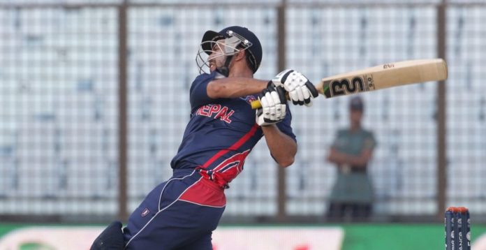 नेपालका लागि बसन्त रेग्मीले अविजित १४ रन बनाए ।